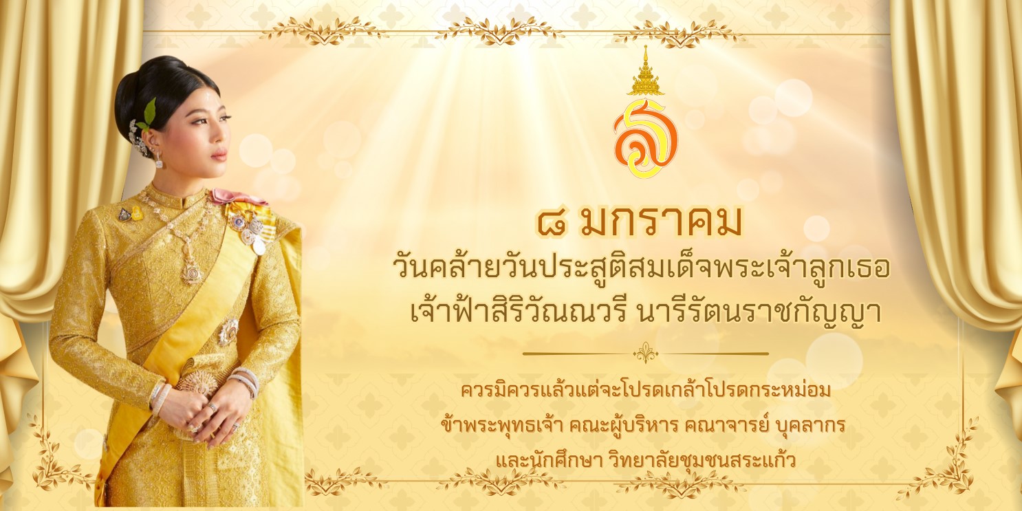 น้อมรำลึกในพระมหากรุณาธิคุณหาที่สุดมิได้ ข้าพระพุทธเจ้า คณะผู้บริหาร คณาจารย์ บุคลากรและนักศึกษา วิทยาลัยชุมชนสระแก้ว